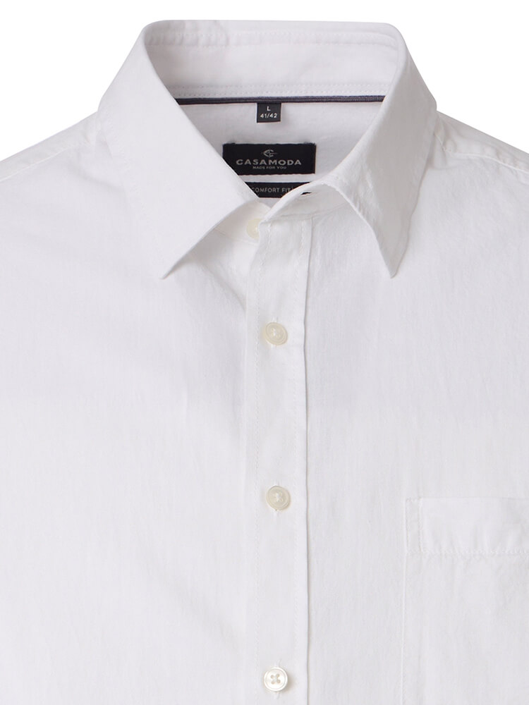 Het comfortabele casual overhemd uit de CASAMODA Comfort Fit collectie staat voor de cultiveerte en modebewuste man van vandaag. Een klassieke snit gecombineerd met modieuze productdetails belooft een hoog comfort en maakt van dit hemd een meester in het combineren. Het effen overhemd in de kleur wit overhemd voor heren mag in geen enkele mannengarderobe ontbreken en kan met de elegante en tijdloze Kent kraag zowel voor elke gelegenheid als in het dagelijks leven worden gedragen. Dit CASAMODA Comfort Fit herenoverhemd komt het beste tot zijn recht met een bijpassende stropdas en een brede dasknoop.