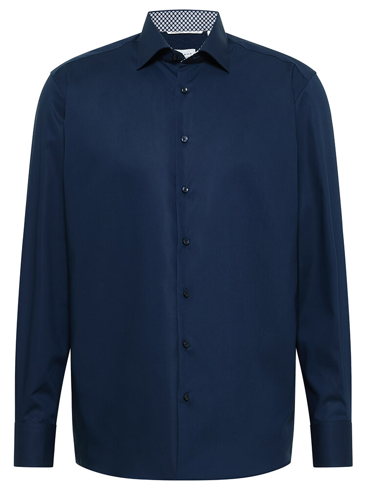 Het moderne business overhemd uit de ETERNA Modern Fit collectie staat voor de zelfverzekerde en modieuze man van vandaag. Een eigentijdse snit in combinatie met eersteklas productdetails belooft een hoog draagcomfort, waardoor dit overhemd een meester in rangschikking is. Het effen overhemd in de kleur donkerblauw overhemd voor heren mag in geen enkele mannengarderobe ontbreken en kan met de stijlvolle en klassieke Kent kraag zowel voor elke gelegenheid als in het dagelijks leven worden gedragen. Dit ETERNA Modern Fit herenoverhemd komt het beste tot zijn recht met een bijpassende stropdas en een brede dasknoop.