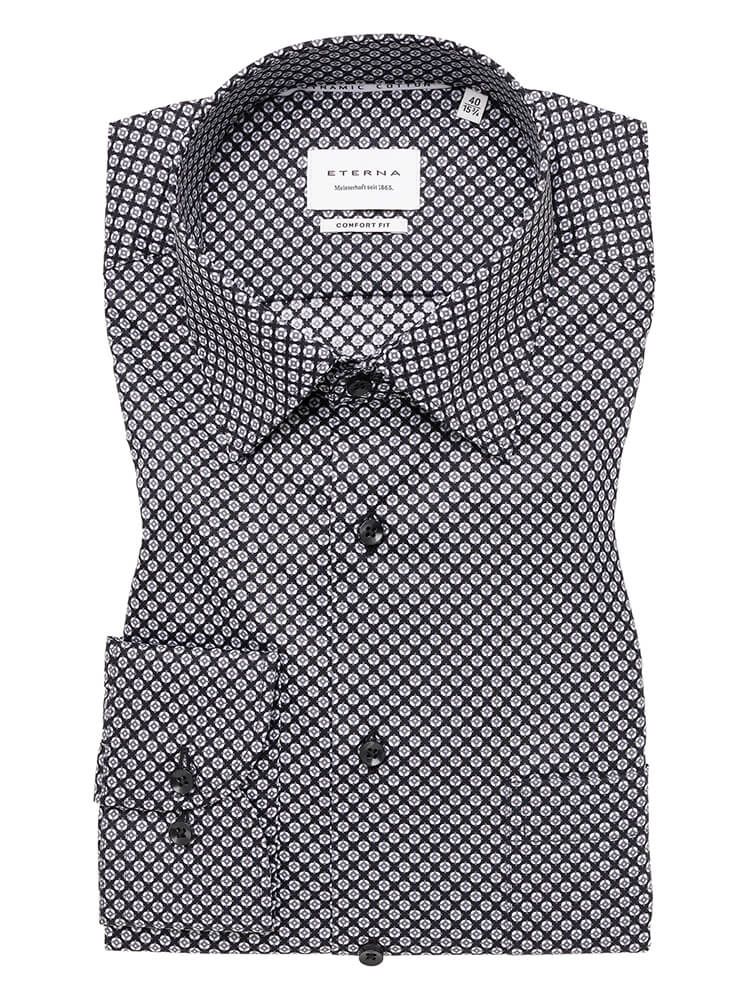 Het comfortabele business overhemd uit de ETERNA Comfort Fit collectie staat voor de cultiveerte en modebewuste man van vandaag. Een klassieke snit gecombineerd met modieuze productdetails belooft een hoog comfort en maakt van dit hemd een meester in het combineren. Het gedessineerde overhemd in de kleur antraciet overhemd voor heren mag in geen enkele mannengarderobe ontbreken en kan met de elegante en tijdloze Kent kraag zowel voor elke gelegenheid als in het dagelijks leven worden gedragen. Dit ETERNA Comfort Fit herenoverhemd komt het beste tot zijn recht met een bijpassende stropdas en een brede dasknoop.