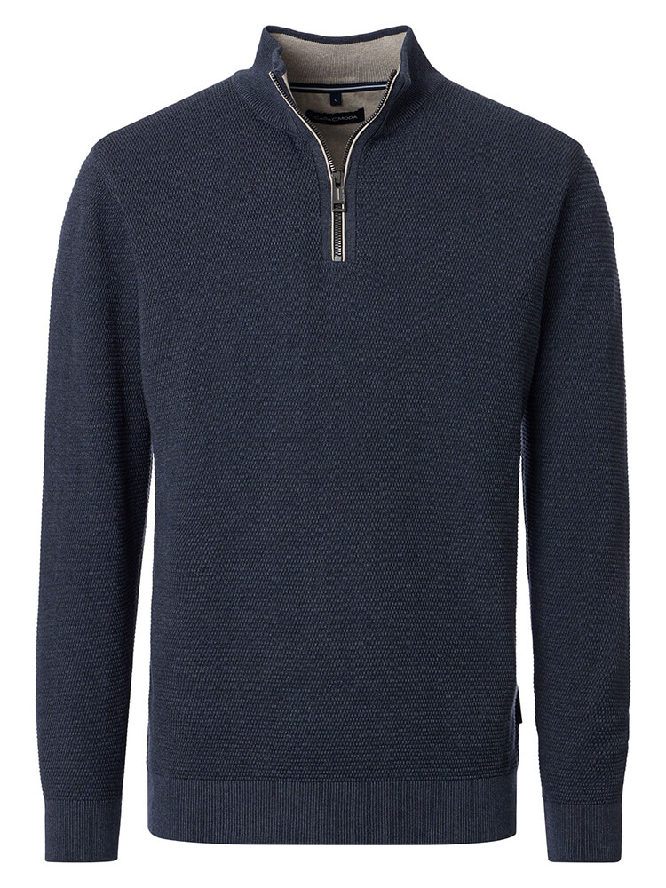 Wat het seizoen ook is, deze uiterst stijlvolle gebreide trui CASAMODA regular fit houdt u comfortabel op koelere avonden of dagen. Deze effen gebreide trui in donkerblauw van 100% katoen met een elegante Opstaande kraag vult uw garderobe aan en accentueert uw mannelijke silhouet. In uw vrije tijd of op kantoor, met deze licht getailleerde pullover van CASAMODA is de feel-good factor gegarandeerd.Fabrikantgegevens: