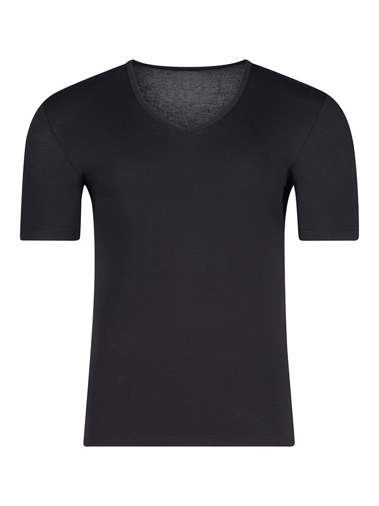 Het HUBER Hautnah Cool Lyocell Selection T-shirt in klassiek zwart voelt uitzonderlijk zacht en...meer