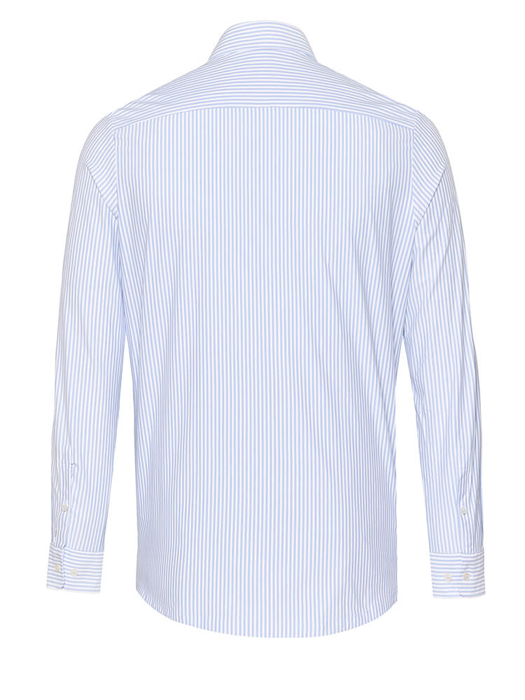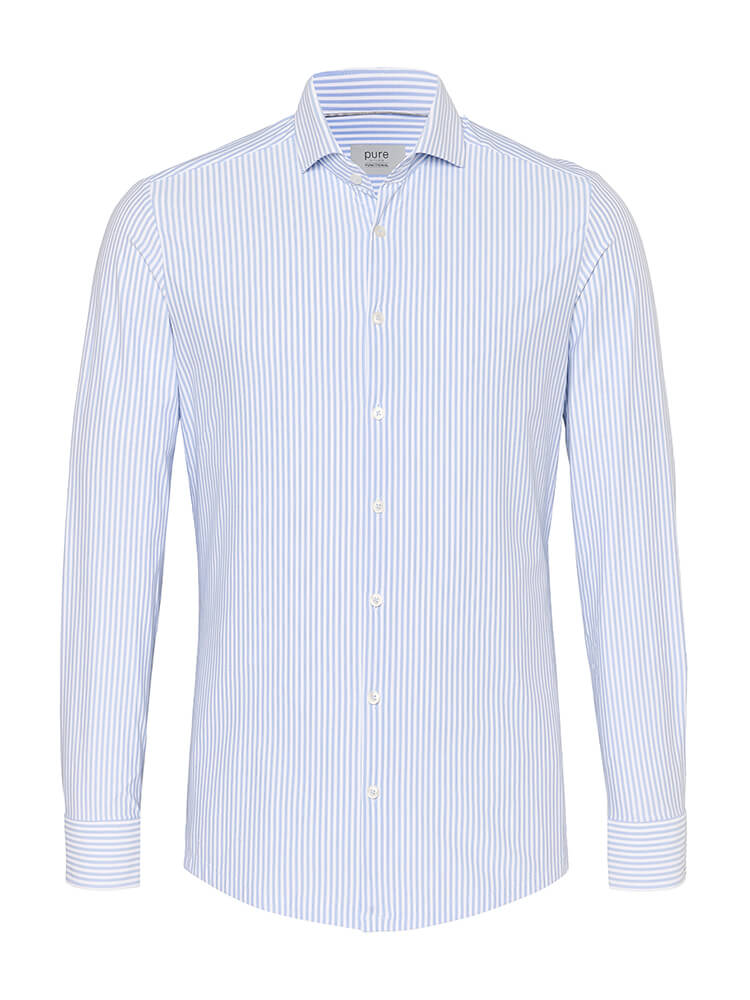 Het elegante jersey overhemd uit de PURE Functional collectie staat voor de slanke, modebewuste man van vandaag. Een slanke pasvorm gecombineerd met modieuze details beloven een hoog draagcomfort en maken van dit overhemd een combinatiekunstenaar. Het gestreepte overhemd in de kleur lichtblauw mag in geen enkele mannengarderobe ontbreken en kan met de elegante en tijdloze Cutaway kraag zowel voor elke gelegenheid als in het dagelijks leven worden gedragen. Dit PURE Functional herenoverhemd komt het beste tot zijn recht met een smalle stropdas en een kleine dasknoop.Fabrikantgegevens: