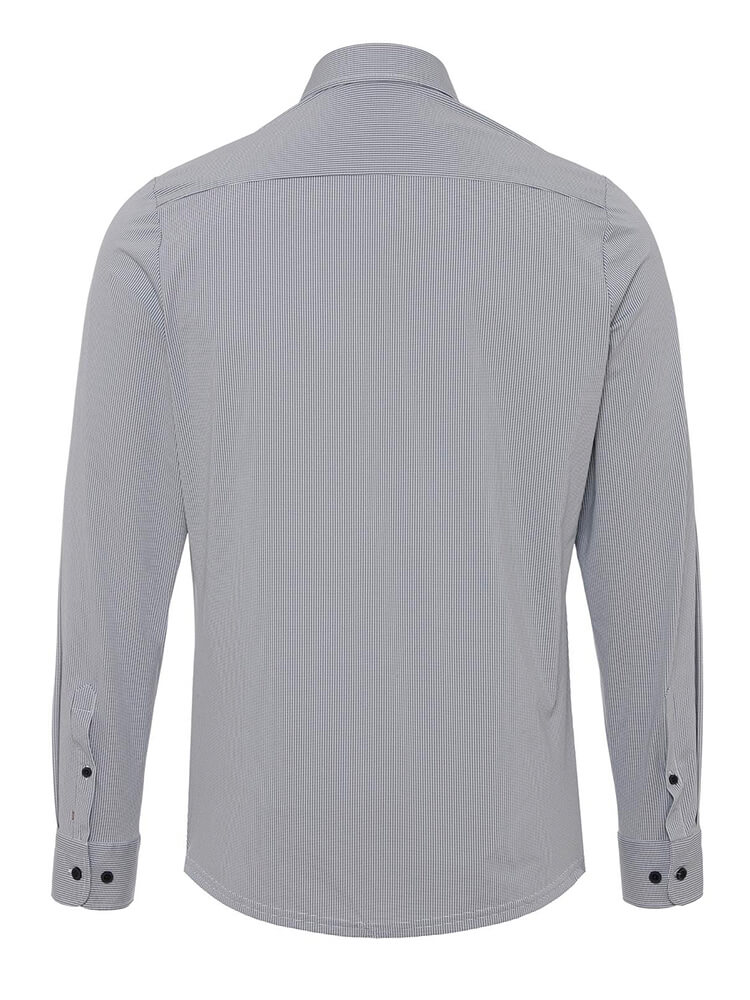 Het elegante jersey overhemd uit de PURE Functional collectie staat voor de slanke, modebewuste man van vandaag. Een slanke pasvorm gecombineerd met modieuze details beloven een hoog draagcomfort en maken van dit overhemd een combinatiekunstenaar. Het effen overhemd in de kleur rookblauw mag in geen enkele mannengarderobe ontbreken en kan met de elegante en tijdloze Cutaway kraag zowel voor elke gelegenheid als in het dagelijks leven worden gedragen. Dit PURE Functional herenoverhemd komt het beste tot zijn recht met een smalle stropdas en een kleine dasknoop.Fabrikantgegevens: