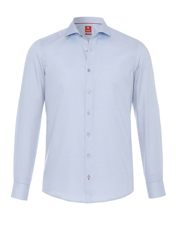 Het elegante business overhemd uit de PURE Slim Fit collectie staat voor de slanke, modebewuste man van vandaag. Een slanke pasvorm gecombineerd met modieuze details beloven een hoog draagcomfort en maken van dit overhemd een combinatiekunstenaar. Het effen overhemd in de kleur lichtblauw overhemd voor heren mag in geen enkele mannengarderobe ontbreken en kan met de elegante en tijdloze Cutaway kraag zowel voor elke gelegenheid als in het dagelijks leven worden gedragen. Dit PURE Slim Fit herenoverhemd komt het beste tot zijn recht met een smalle stropdas en een kleine dasknoop.Fabrikantgegevens: