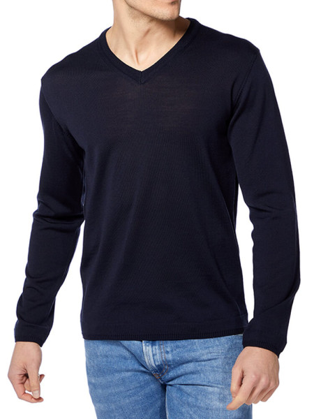 Wat het seizoen ook is, deze uiterst stijlvolle gebreide trui TOM RIPLEY regular fit houdt u comfortabel op koelere avonden of dagen. Deze effen gebreide trui in marine van 100% merinoswol met een elegante V-hals vult uw garderobe aan en accentueert uw mannelijke silhouet. In uw vrije tijd of op kantoor, met deze licht getailleerde pullover van TOM RIPLEY is de feel-good factor gegarandeerd.Fabrikantgegevens: