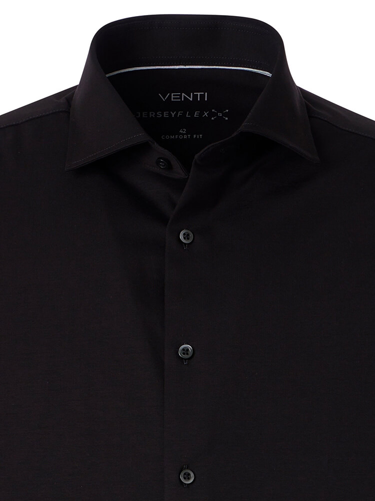 Het comfortabele jersey overhemd uit de VENTI Comfort Fit collectie staat voor de cultiveerte en modebewuste man van vandaag. Een klassieke snit gecombineerd met modieuze productdetails belooft een hoog comfort en maakt van dit hemd een meester in het combineren. Het effen overhemd in de kleur zwart overhemd voor heren mag in geen enkele mannengarderobe ontbreken en kan met de elegante en tijdloze Kent kraag zowel voor elke gelegenheid als in het dagelijks leven worden gedragen. Dit VENTI Comfort Fit herenoverhemd komt het beste tot zijn recht met een bijpassende stropdas en een brede dasknoop.Fabrikantgegevens: