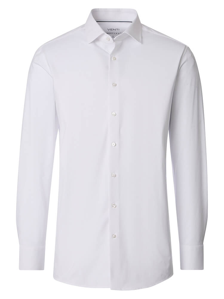 Het comfortabele jersey overhemd uit de VENTI Comfort Fit collectie staat voor de cultiveerte en modebewuste man van vandaag. Een klassieke snit gecombineerd met modieuze productdetails belooft een hoog comfort en maakt van dit hemd een meester in het combineren. Het effen overhemd in de kleur wit overhemd voor heren mag in geen enkele mannengarderobe ontbreken en kan met de elegante en tijdloze Kent kraag zowel voor elke gelegenheid als in het dagelijks leven worden gedragen. Dit VENTI Comfort Fit herenoverhemd komt het beste tot zijn recht met een bijpassende stropdas en een brede dasknoop.
