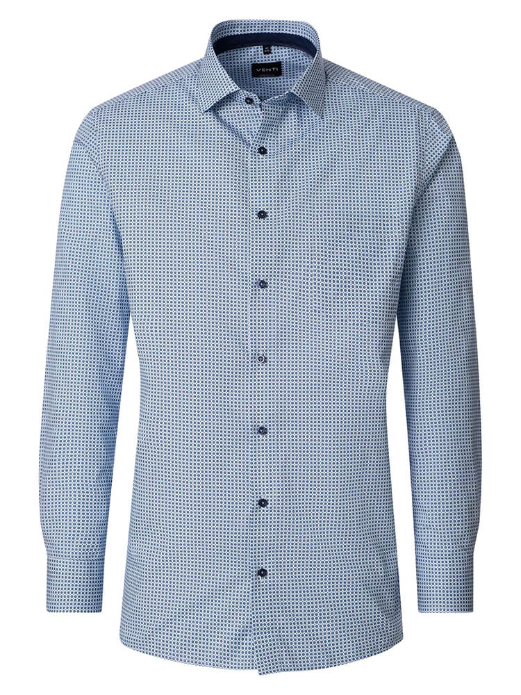 Het comfortabele business overhemd uit de VENTI Comfort Fit collectie staat voor de cultiveerte en modebewuste man van vandaag. Een klassieke snit gecombineerd met modieuze productdetails belooft een hoog comfort en maakt van dit hemd een meester in het combineren. Het gedessineerde overhemd in de kleur lichtblauw overhemd voor heren mag in geen enkele mannengarderobe ontbreken en kan met de elegante en tijdloze Kent kraag zowel voor elke gelegenheid als in het dagelijks leven worden gedragen. Dit VENTI Comfort Fit herenoverhemd komt het beste tot zijn recht met een bijpassende stropdas en een brede dasknoop.Fabrikantgegevens: