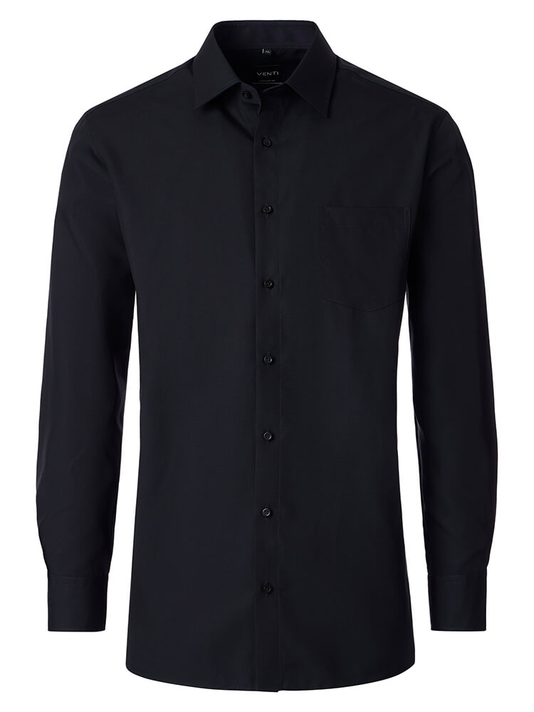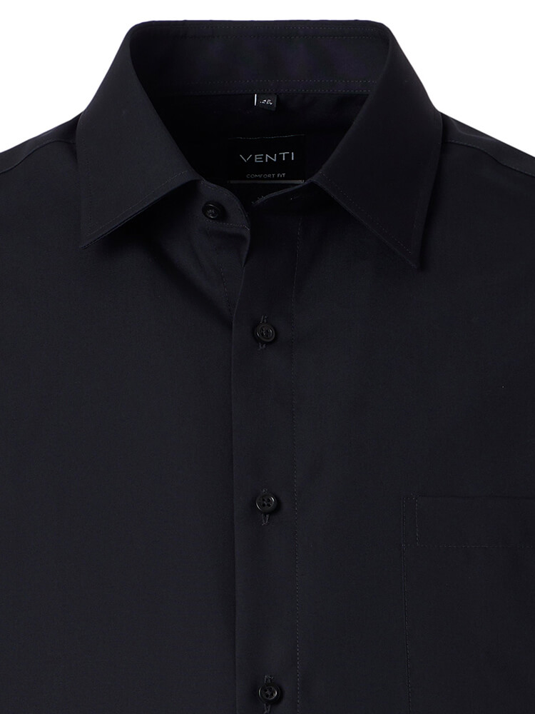 Het comfortabele business overhemd uit de VENTI Comfort Fit collectie staat voor de cultiveerte en modebewuste man van vandaag. Een klassieke snit gecombineerd met modieuze productdetails belooft een hoog comfort en maakt van dit hemd een meester in het combineren. Het effen overhemd in de kleur zwart overhemd voor heren mag in geen enkele mannengarderobe ontbreken en kan met de elegante en tijdloze Kent kraag zowel voor elke gelegenheid als in het dagelijks leven worden gedragen. Dit VENTI Comfort Fit herenoverhemd komt het beste tot zijn recht met een bijpassende stropdas en een brede dasknoop.Fabrikantgegevens: