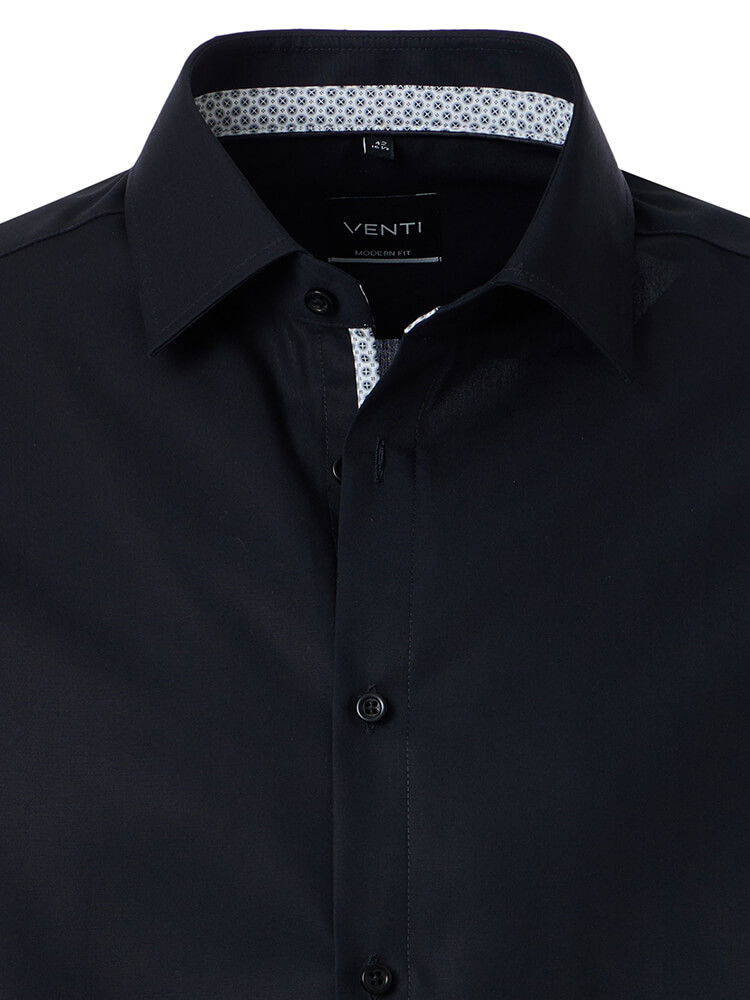 Het comfortabele business overhemd uit de VENTI Comfort Fit collectie staat voor de cultiveerte en modebewuste man van vandaag. Een klassieke snit gecombineerd met modieuze productdetails belooft een hoog comfort en maakt van dit hemd een meester in het combineren. Het effen overhemd in de kleur zwart overhemd voor heren mag in geen enkele mannengarderobe ontbreken en kan met de elegante en tijdloze Kent kraag zowel voor elke gelegenheid als in het dagelijks leven worden gedragen. Dit VENTI Comfort Fit herenoverhemd komt het beste tot zijn recht met een bijpassende stropdas en een brede dasknoop.Fabrikantgegevens: