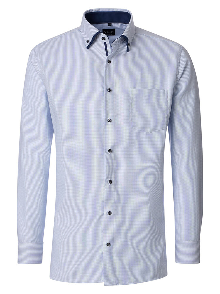 Het comfortabele business overhemd uit de VENTI Comfort Fit collectie staat voor de cultiveerte en modebewuste man van vandaag. Een klassieke snit gecombineerd met modieuze productdetails belooft een hoog comfort en maakt van dit hemd een meester in het combineren. Het effen overhemd in de kleur lichtblauw overhemd voor heren mag in geen enkele mannengarderobe ontbreken en kan met de elegante en tijdloze Button-down kraag zowel voor elke gelegenheid als in het dagelijks leven worden gedragen. Dit VENTI Comfort Fit herenoverhemd komt het beste tot zijn recht met een bijpassende stropdas en een brede dasknoop.