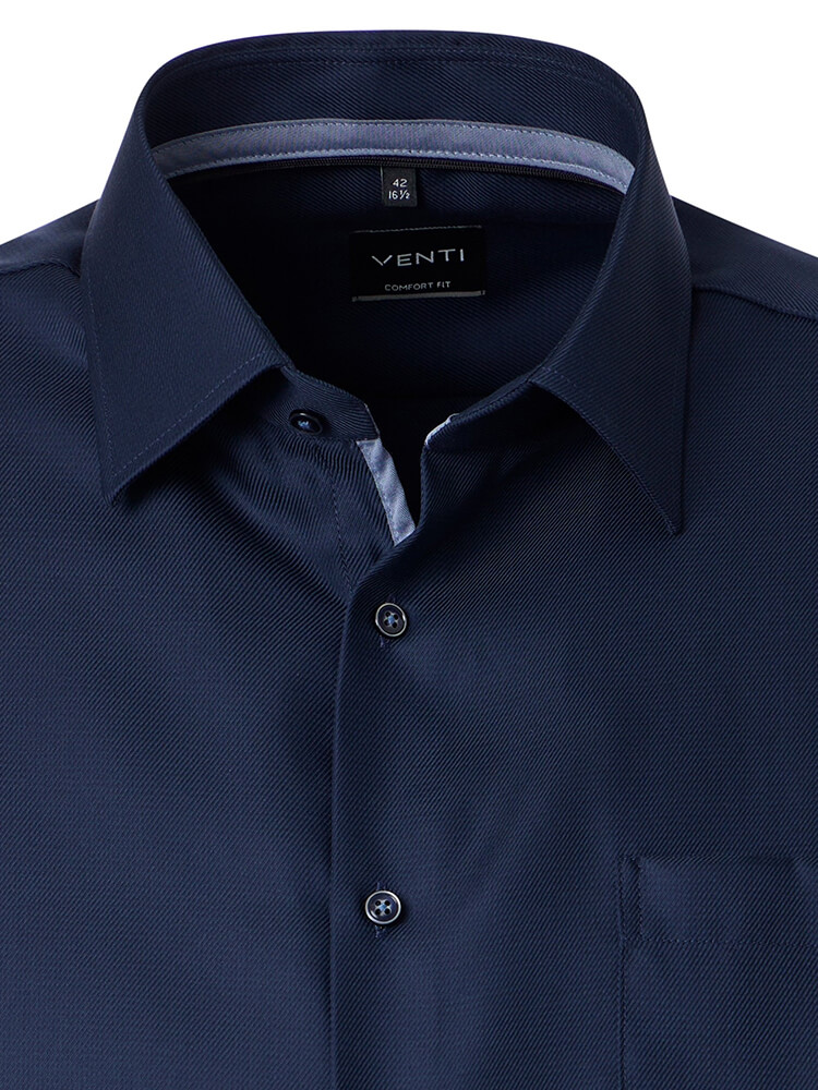 Het comfortabele business overhemd uit de VENTI Comfort Fit collectie staat voor de cultiveerte en modebewuste man van vandaag. Een klassieke snit gecombineerd met modieuze productdetails belooft een hoog comfort en maakt van dit hemd een meester in het combineren. Het effen overhemd in de kleur donkerblauw overhemd voor heren mag in geen enkele mannengarderobe ontbreken en kan met de elegante en tijdloze Kent kraag zowel voor elke gelegenheid als in het dagelijks leven worden gedragen. Dit VENTI Comfort Fit herenoverhemd komt het beste tot zijn recht met een bijpassende stropdas en een brede dasknoop.Fabrikantgegevens: